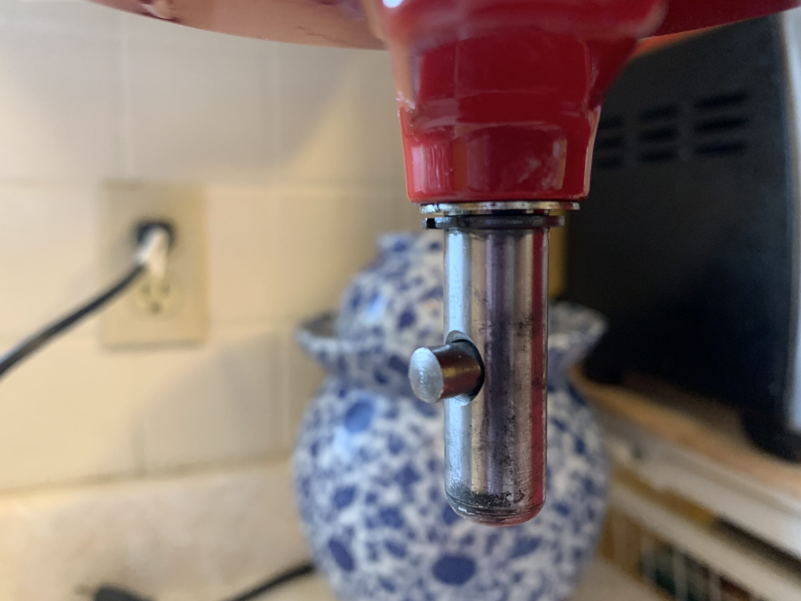 作为一个资深的和面机用坏者,我觉得和面机的设计有一个严重的缺陷,就是照片中的这个不起眼的小部件,也就是这个凸起的小杆。由于杠杆作用,这个小杆在用过一段时间后会松动,然后就被拉出来一些,虽然出来的不多,但足以阻止搅拌臂顺利地取下来,这样的话,每次都会用比较大的力摆动、拽,拿下搅拌臂。久而久之,被大力出奇迹影响的相关的部件就会被损坏,最终导致和面机整体损坏。新的和面机买回来一个半月,这个小杆就被拉松了。我还没有想到什么好办法解决这个问题,如果用强力胶粘住的话,日积月累,强力胶早晚都会被磨掉,掉到下面的面里面,最后吃到家人的肚子里。慢慢地想吧,办法总比问题多。